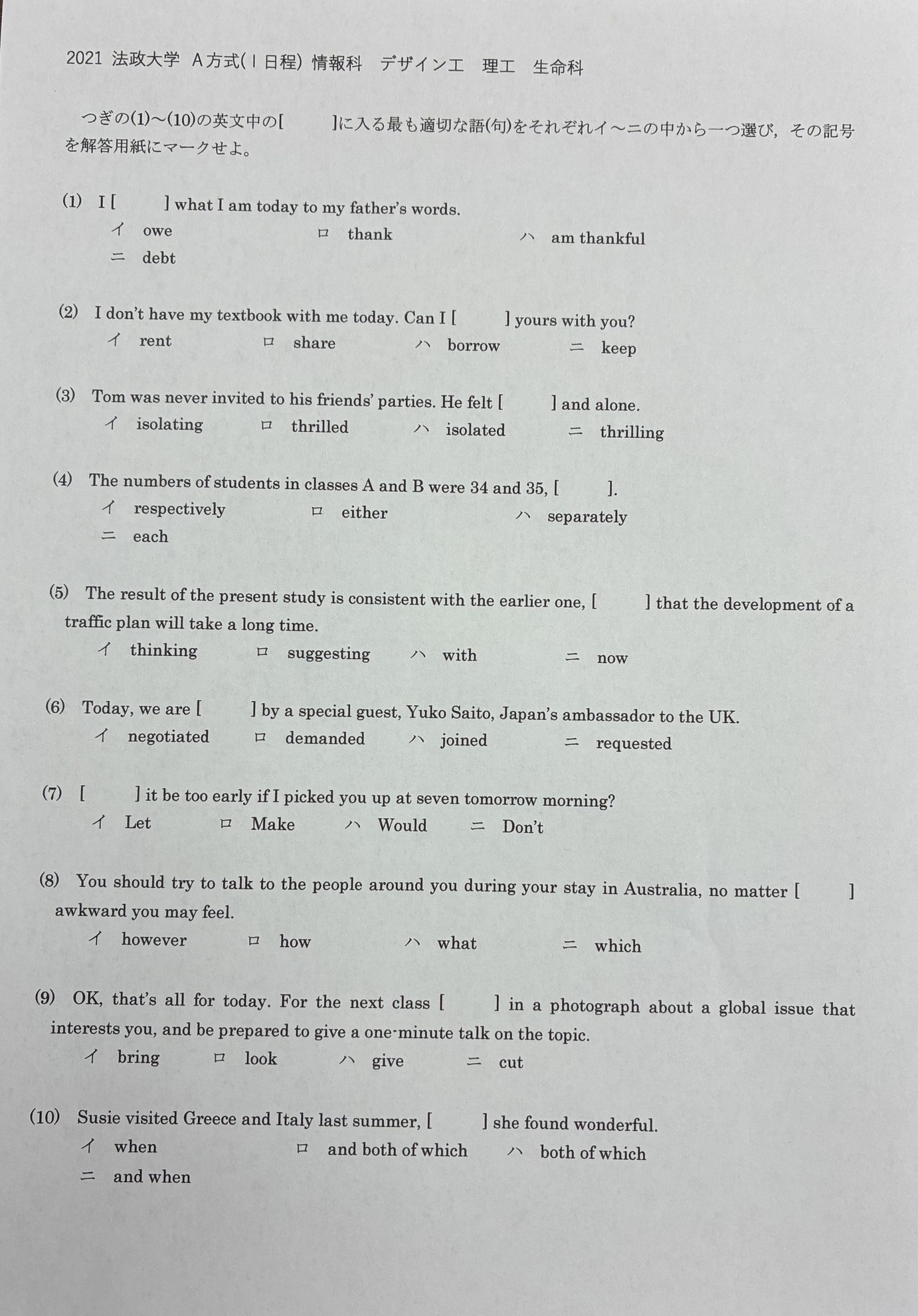 2021年の法政大学の文法問題を解説していきます